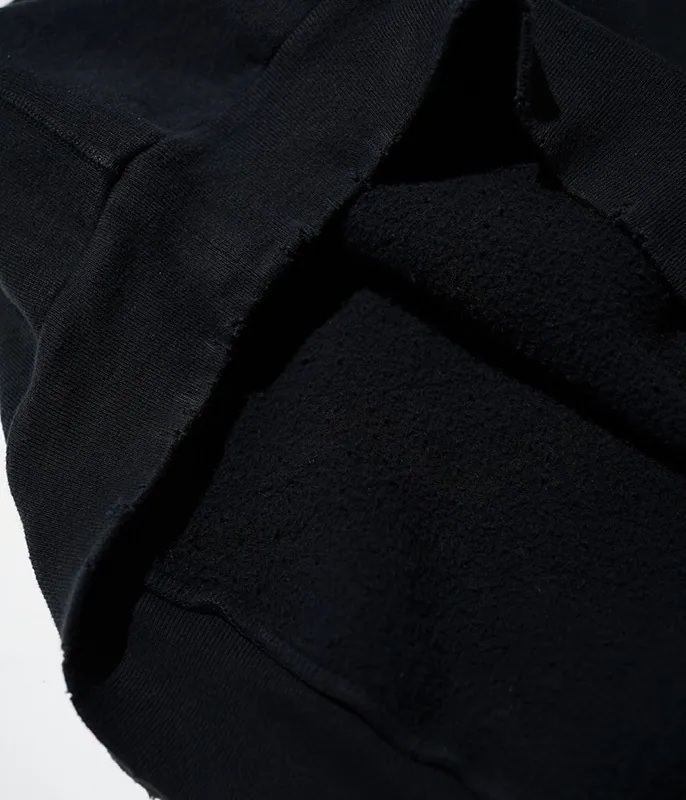 The outer fabric is a hanging fleece created by analyzing vintage items, and can only be knitted at a slow speed of one meter per hour.However, by knitting without putting any extra strain on the yarn, the fabric is thick but not stiff, and has a fluffy texture.